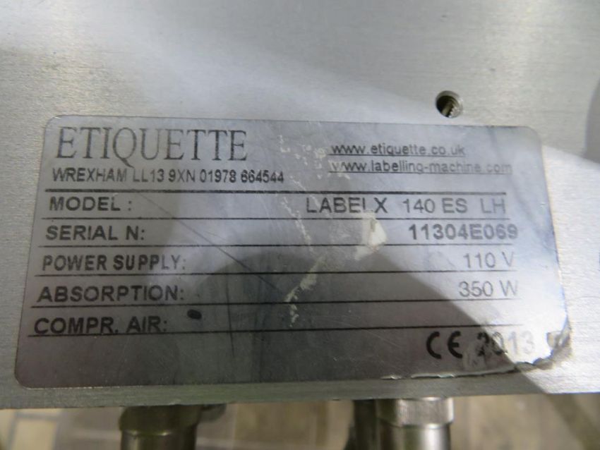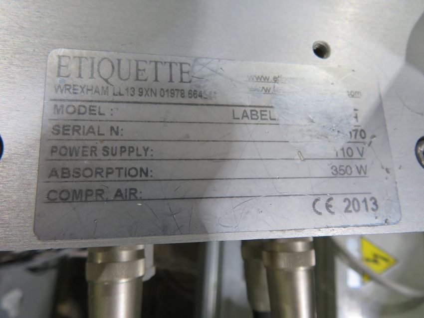 Etiquette Twin Head Side Labeller with Labelx 140 ES LH Heads and Pro Face Digital Read Outs. Please note the Lift Out Fee guide price for this Lot is £50. Please read Lot 0 for further information regarding Lift Out Fee's