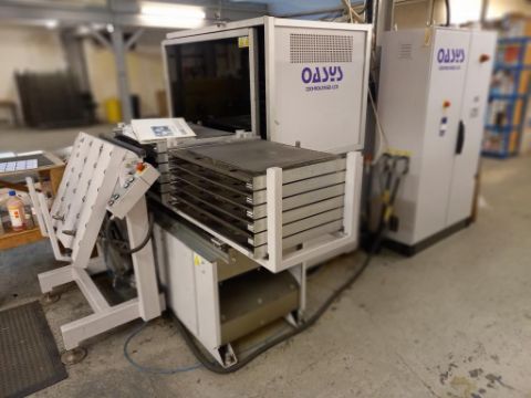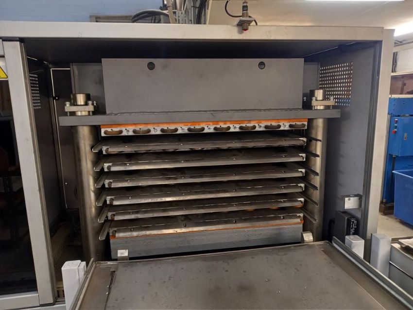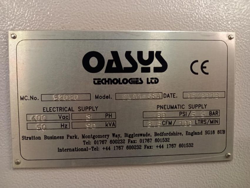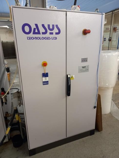 An Oasys Model OLA-1-4SA 4 Tray Hydraulic Laminator for PVC and Card, YOM 2007, M/N 52061, 3 Pahse, with Hitema Twin Fan Chiller |