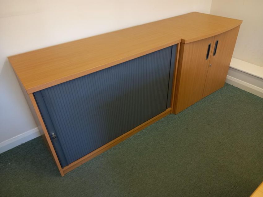 Loose and Removable Furniture to Landing Area including Curved Melamine Desk and maching 4 drawer Pedestal, Tambour Front Cupboard, Computer/Printer Stand. (PC and Printer not included) |