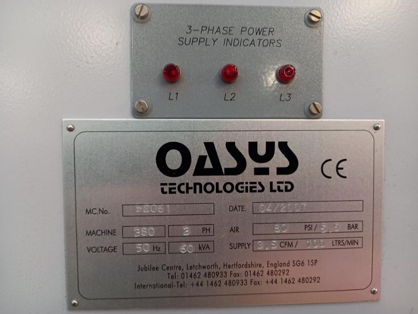 An Oasys Model OLA-1-4SA 4 Tray Hydraulic Laminator for PVC and Card, YOM 2007, M/N 52061, 3 Pahse, with Hitema Twin Fan Chiller |