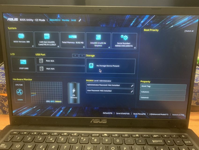 Asus Vivobook Laptop with 15.6" screen; Intel i5-1135G7 processor; 16GB RAM - SSD's removed