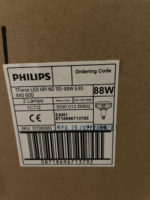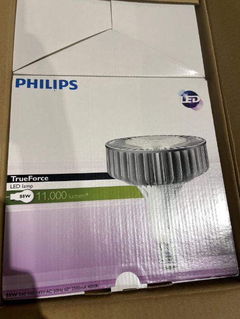 Phillips True Force LED Industrial and retail lamps, 88 w, 11,000 Lumens, 50,000 h, HID replacement, 1 Pallet of 36 bulbs in boxes of 2 - Unused in original packaging. Please note there is a £20 Plus VAT Lift Out Fee on this lot