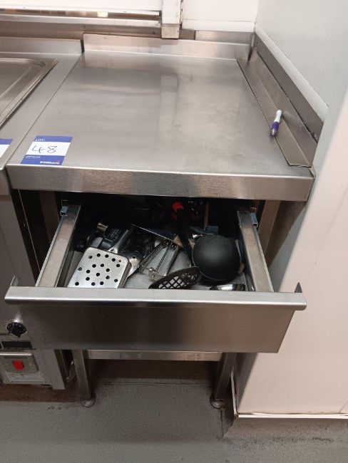 700mm(d) x 500mm(w) x 920mm(h) stainless steel preparation table with shelf and drawer